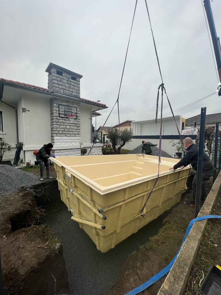 Posté le 13/03/2023 à 14:28"Une équipe au top, sympa et très pro !! Pose et calage de la coque par David et son équipe puis une grande disponibilité pour l'accompagnement au remblayage, raccordements au local technique et différents montages... Il n'y a plus qu'a profiter !! Merci encore à toute l'équipe !!!"